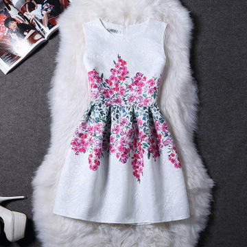 2016春夏時尚印花修身連衣裙禮服無袖背心打底a字蓬蓬裙潮公主裙 /