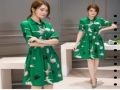 2016夏裝新品時尚韓版小香風(fēng)天鵝印花收腰顯瘦真絲連衣裙 /