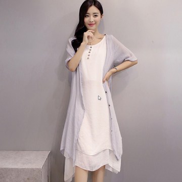 2016夏裝新品寬松大碼女裝韓版文藝兩件套無袖棉麻連衣裙 /