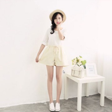 2016夏裝新品時尚韓版百搭寬松休閑褲闊腿棉麻短款女 /