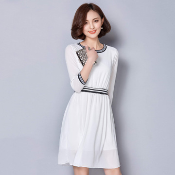 2016新款夏裝韓版圓領雪紡連衣裙修身顯瘦 /