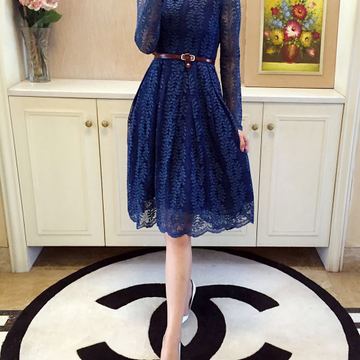 2016年春夏新款不規(guī)則蕾絲繡花連衣裙 /