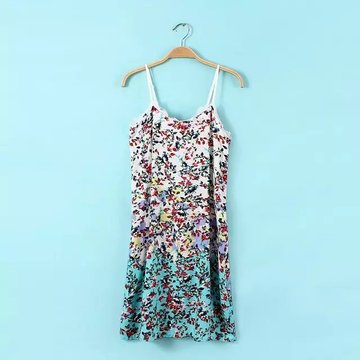外貿(mào)批發(fā)速賣通歐美風(fēng)時(shí)尚甜美碎花人棉數(shù)碼定位漸變吊帶裙連衣裙 /