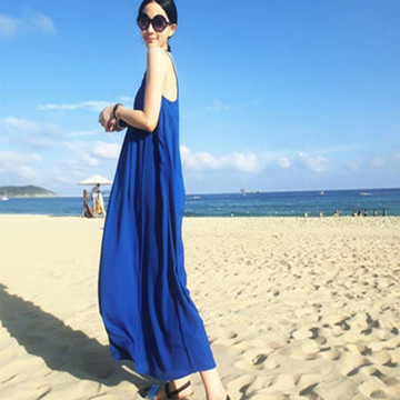 連衣裙夏天韓版無袖大碼雪紡女裝沙灘裙海邊度假吊帶長裙連衣裙女 /