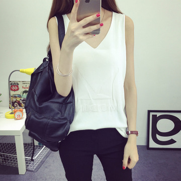 1638實拍夏裝韓版新款寬松無袖針織打底衫吊帶小背心女工字型外穿 /