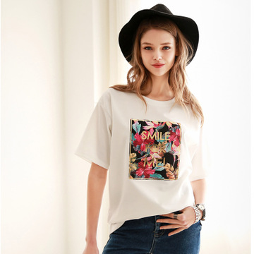 夏季彩色印花短袖T恤女裝韓國(guó)新款半袖純棉上衣服寬松打底衫女潮 /