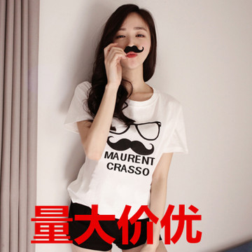 阿里巴巴1688女裝上衣服潮印花胡子韓版寬松短袖t恤女批發(fā)打底衫 /