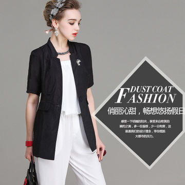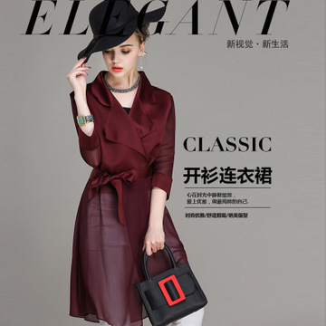 2016春夏翻領(lǐng)中袖寬松純色韓版開(kāi)衫連衣裙休閑系帶風(fēng)衣外套防曬衣 /