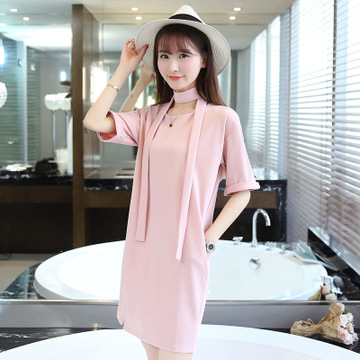 2016新款韓版小清新蝴蝶結(jié)收腰修身裙子甜美寬松大碼連衣裙女 /