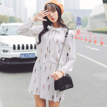 2016春季女裝新款韓國東大門時(shí)尚雪紡印花連衣裙 松緊 /