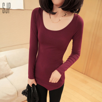2016夏裝新款女裝緊身長袖T恤歐美衣服修身純色打底衫女春秋內(nèi)搭 /