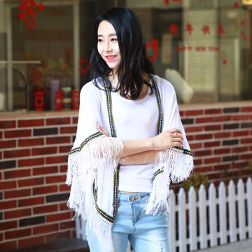 海邊薄流蘇披肩外套沙灘防曬衣夏季度假外搭防曬開衫寬松雪紡衫女 /