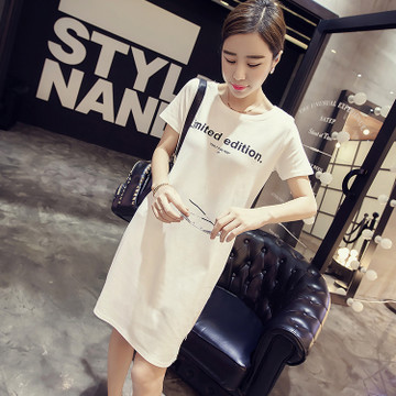 招代理夏新款體恤連衣裙中長款打底衫修身短袖印花t恤學(xué)生韓版女 /