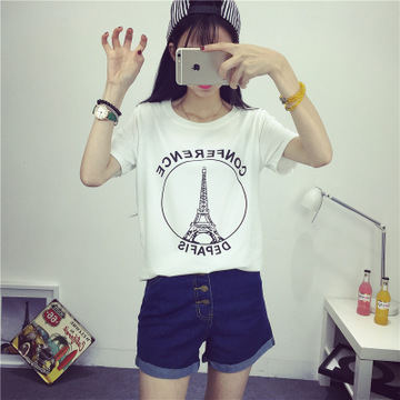 2016爆款夏季女裝短袖t恤 外貿(mào)韓版女裝印花短袖t恤批發(fā) 地?cái)傌浽?/span> /