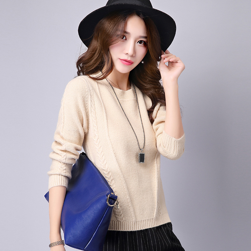 秋冬新款女羊絨打底衫百搭顯瘦寬松女毛衣粗毛線套頭毛衣女裝批發(fā) /