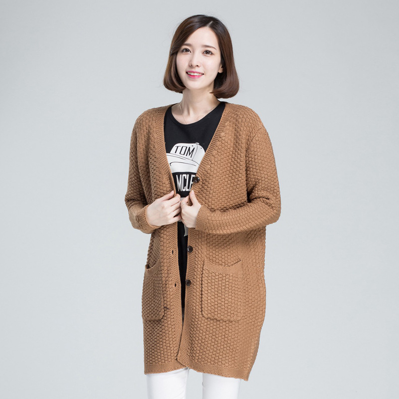 秋裝新款羊毛混紡女式針織衫 韓版純色中長款開衫外套女裝批發(fā) /