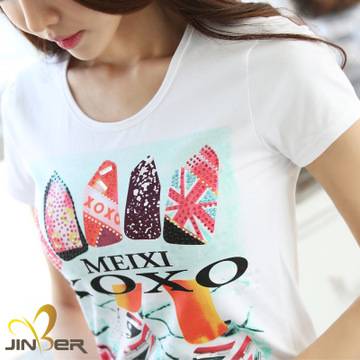 實(shí)拍韓國(guó)修身顯瘦印花莫代爾純棉T恤大碼女短袖潮 /