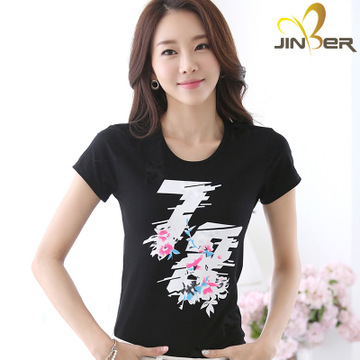 韓國(guó)實(shí)拍韓版修身顯瘦大牌設(shè)計(jì)印花奧代爾純棉T恤女短袖 /
