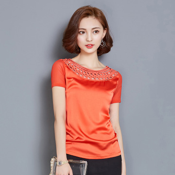 2016夏裝新款 韓版氣質(zhì)修身大碼鏤空蕾絲網(wǎng)紗百搭打底衫女上衣潮 /