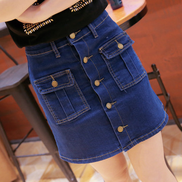 (實(shí)拍)高腰A字彈力牛仔裙半身裙顯瘦短裙一排扣韓版包臀 /
