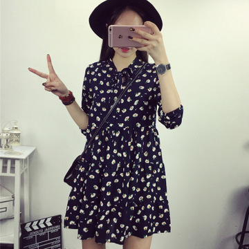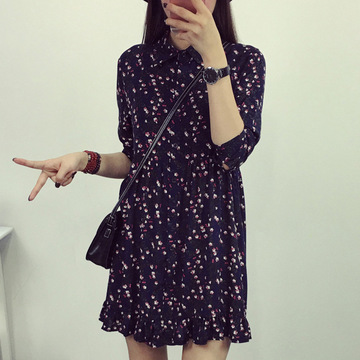 2016夏裝新款寬松翻領(lǐng)雪紡碎花連衣裙襯衫裙內(nèi)搭A(yù)字打底裙 /