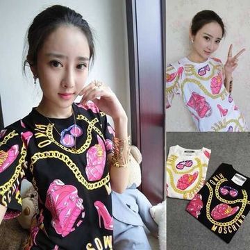 歐洲站2016潮流新款包包鏈條高跟鞋帽子眼鏡短袖寬松女裝大碼T恤 /