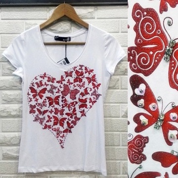 歐美風(fēng)夏裝新款 時(shí)尚女短袖t恤 印花蝴蝶 心形個(gè)性上衣大碼打底衫 /
