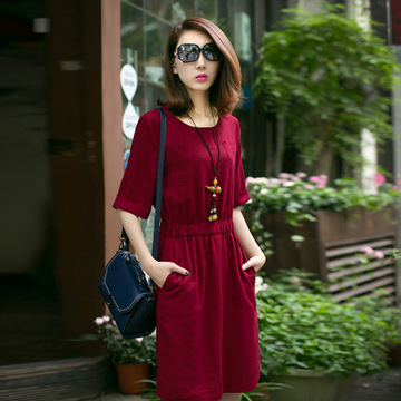 2016夏季新款棉麻韓版圓領(lǐng)中長(zhǎng)款連衣裙 網(wǎng)絡(luò)分銷(xiāo)商一件代發(fā)8535 /