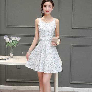 實(shí)拍2016新款夏裝 韓國(guó)碎花棉清新裙彈力收腰顯瘦吊帶短裙子 /