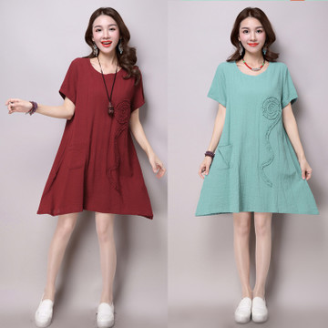 2016夏季新款韓版大碼連衣裙立體刺繡肌理感短袖寬松連衣裙 /