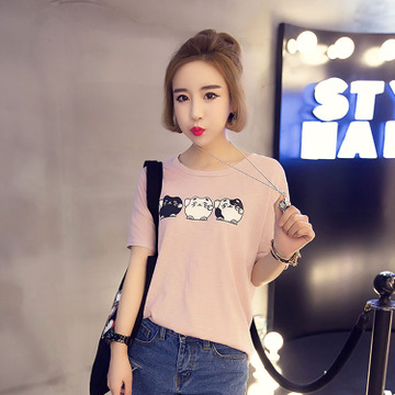 2016夏裝新款韓版時(shí)尚修身顯瘦百搭T圓領(lǐng)短袖卡通印花T恤衫好質(zhì)量 /