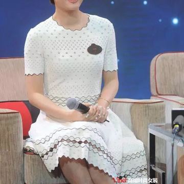 2016夏季歐美時(shí)尚鏤空拼接針織 A字裙孫儷明星同款連衣裙 /