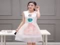 韓版2016夏新款淑女白色圓領(lǐng)無袖中長裙時尚印花雪紡拼接連衣裙潮 /