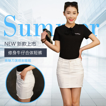 2016夏季新款韓范破洞高腰顯瘦包臀牛仔短裙純色半身裙 /