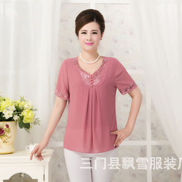 批發(fā)爆款女裝短袖T恤2016夏季新款媽媽裝繡花上衣韓版大碼雪紡衫 /