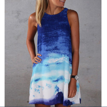 wish 速賣通爆款 2016新款歐美風(fēng)印花寬松女裝無袖連衣裙?jié)u變色 /