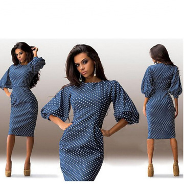 熱賣 2016新款春季波點(diǎn)印花燈籠袖修身包臀歐美熱賣連衣裙 /
