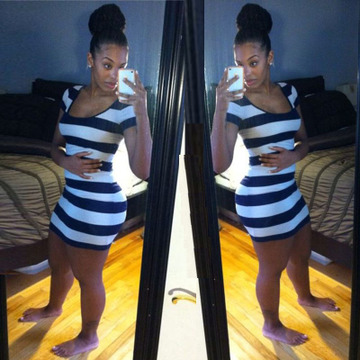 2016速賣通亞馬遜夏季新款歐美外貿寬條紋 短袖 性感包臀連衣裙 /