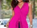 速賣通EBAY性感時尚胸前紐結針織拼接蕾絲個性中長款背心 /