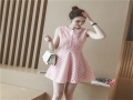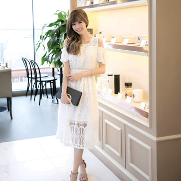 2016夏季新款韓版蕾絲氣質(zhì)露肩短袖收腰修身連衣裙 /