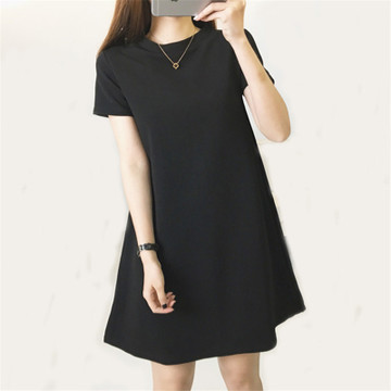 2016夏季新品韓版經(jīng)典修身彈力高腰純色短袖A字連衣裙特價批發(fā) /