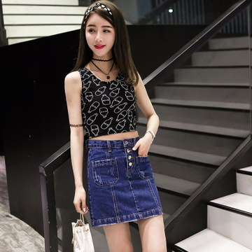 2016新款韓版高腰包臀牛仔半身裙排扣短裙牛仔裙A字裙女 /