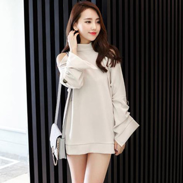 2016春裝新款韓版金扣別針設(shè)計露肩雪紡上衣連衣裙 /