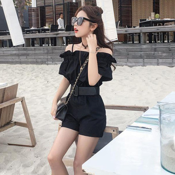【Sunny33小超人】低調(diào)著小性感黑色荷葉邊露肩連體褲 /