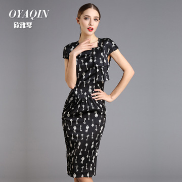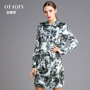 OYAQIN 2016春季新品高檔女裝印花連衣裙 /