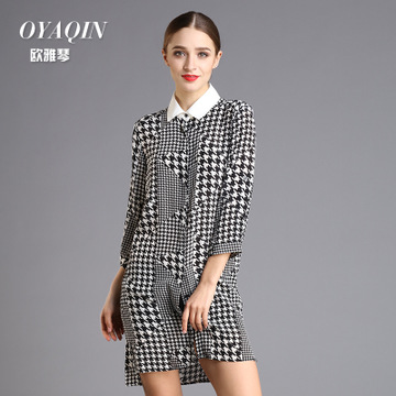 OYAQIN 2016春季新款原創(chuàng)設(shè)計歐美風(fēng)假兩件套連衣裙 /