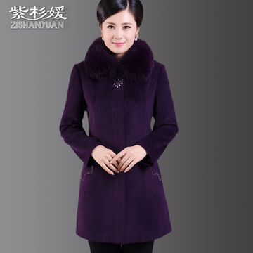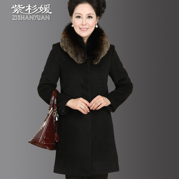 中老年女裝冬裝狐貍毛領媽媽裝羊毛大衣女中長款毛呢外套40-50歲 /