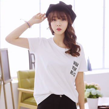 2016夏季新款打底衫潮流寬松圓領(lǐng)短袖純色 /