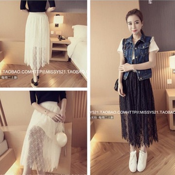 2016春裝新款韓版鏤空透視蕾絲裙高腰中長款半身裙 女 /