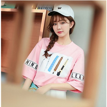baby推薦2016夏季新款中袖t恤女時(shí)尚文具印花百搭直筒修身上衣女 /